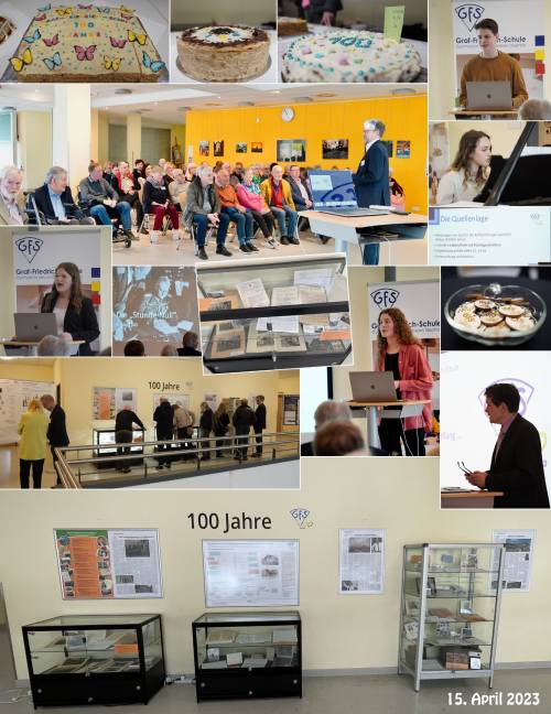 Zur Feier der Gründung hat das Gymnasium am 15. April 2023 in die Schulmensa geladen. Über hundert Ehemalige, Schülerinnen und Schüler, Lehrkräfte und Interessierte, informierten sich über die bewegten Anfänge der Aufbauschule, die 1923 in die große deutsche Inflation gestartet ist.