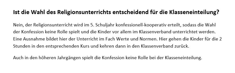 Ist die Wahl des Religionsunterrichts entscheidend für die Klassenteilung?