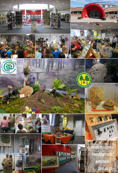 „Nicht auch noch Ameisen!“ - So reagierte manch ein Lehrer angesichts des extrem kurzen und gedrängten Schuljahres 2016/2017 auf die Ankündigung, dass alle Klassen der GFS und die Jahrgänge 7 und 6 der Realschule in den letzten drei Wochen vor den Sommerferien einen weiteren Programmpunkt auf der Agenda hatten. Doch die Ausstellung heißt nicht umsonst „Faszination Ameisen“. Oft wich eine anfängliche Skepsis schon beim ersten Blick auf das Formicarium mit seinen ca. 50.000 Roten Waldameisen dem Bewusstsein, dass hier etwas ganz Besonderes auf die Besucher wartete. Spätestens wenn Gert Habermann, der Vorsitzende der Deutschen Ameisenschutzwarte Landesverband Niedersachen, oder seine Kollegin Ilse Grotian dann eine Hand in das oben offene (!) Formicarium hielten und jeder anschließend an der Hand die gegen den „Eindringling“ in hohem Bogen verspritzte Ameisensäure erschnüffeln konnte, waren die Besucher mittendrin in der tatsächlich faszinierenden Welt der kleinen Krabbeltiere. Überraschende Bilder und Fakten setzten die Besucher - ob groß, ob klein - während der Führung immer wieder in Erstaunen, so z. B. dass eine Ameisenkönigin über 20 Jahre alt werden kann, dass sich bei dem Nest - wie bei einem Eisberg - der größte Teil unter der Oberfläche befindet oder dass in diesem Nest aufgrund eines ausgeklügelten Systems mit „Heizung“ und „Lüftung“ konstant eine Temperatur von 28 Grad herrscht. Voll Bewunderung stand man vor dem Bild einer Weberameise, die, kopfüber an einer Glasscheibe hängend, das 100-fache ihres Körpergewichts trug; tatsächlich benötigt es das 200-fache des Körpergewichts, um solch eine Verbindung zu lösen. Hier und im weiteren Verlauf der Führung fiel immer wieder das Stichwort Bionik, das Abschauen und Nutzen von Phänomenen aus der Natur für die moderne Technik. Von Forschern untersucht wird beispielsweise auch das „Autobahnnetz“ der Ameisen. Wie schaffen sie es trotz ihrer großen Zahl von Zehntausenden, zuweilen Hunderttausenden von Individuen auf engstem Raum, dass es keine Zusammenstöße und keine Staus gibt, sondern alles reibungslos abläuft? Die Antwort liegt zum einen in der speziellen Form der Kommunikation - Ameisen können sich über 28 verschiedene Duftstoffe miteinander verständigen -, zum anderen im ausgeprägten Sozialverhalten der Tiere. Rücksichtnahme statt Egoismus ist angesagt. Das geht hin bis zum „Sozialmagen“ der Tiere, wie die beiden Experten den Besuchern erklärten. Zentrales Anliegen der Ausstellung ist aber nicht nur, über die Ameisen selbst aufzuklären, sondern die Vernetzung allen Lebens en miniature aufzuzeigen. Ein nachgebauter Waldsaum, Filmsequenzen und zahlreiche informative Schaukästen, Modelle und Lehrtafeln machten dies deutlich. Bei den (ausgestopften) Tieren des Waldsaums wurde allerdings zunächst einmal deutlich, dass man auch bei Kindern aus der ländlichen Region nicht mehr als selbstverständlich voraussetzen kann, dass sie einen Eichelhäher, einen Grünspecht, ein Rebhuhn oder einen Dachs erkennen und benennen können. Und wer wusste vorher schon, dass der Eichelhäher sich mit ausgebreiteten Flügeln auf das Ameisennest setzt, um sich von den Säure verspritzenden Insekten das Gefieder reinigen zu lassen? Wer wusste, dass der auf Ameisen spezialisierte Grünspecht seine klebrige Zunge um das Fünffache auf bis zu 10 cm verlängern kann, um im Ameisenbau an Leckereien zu kommen, und dass diese Zunge, wenn er sie nicht zum Fressen braucht, hinter das Gehirn geschoben wird und dort als Stoßdämpfer (wieder das Stichwort Bionik) dient? Wer wusste, dass es ohne Ameisen viele Tierarten nicht gäbe? So lässt sich z. B. die Raupe des Bläulings von den Ameisen in deren Brutkammer tragen, wo sie von deren Nachwuchs lebt, sich verpuppt und dann als wunderschöner Schmetterling wieder ans Tageslicht kommt. Auf die Frage, warum sich die Ameisen solch ein „troianisches Pferd“ in ihr Nest holen, antworteten die Experten, dass sie durch spezielle Duftstoffe getäuscht würden, es sich dabei aber nicht um Schmarotzertum handele, sondern um eine Symbiose; denn ein zuckerhaltiges Sekret, das die Raupen ausscheiden, diene wiederum den Ameisen als Nahrung. Die Besucher erfuhren auch von der höchst effektiven Symbiose zwischen Ameisen und Blattläusen - Stichwort: Honigtau - oder von der Gefährdung des ursprünglich perfekt funktionierenden Systems durch massenhaft aus Asien importierte Marienkäfer. Diese verdrängen übrigens auch unsere heimischen roten Marienkäfer immer stärker. Durch konkrete Beispiele wie dieses wurde deutlich, welche Auswirkungen unbedachte Eingriffe des Menschen in vernetzte Systeme haben. Allzu oft führt fehlendes Verständnis für komplexe Zusammenhänge zu nicht wieder gutzumachenden Zerstörungen. Derzeit sterben täglich (!) ca. 150 Tier- und Pflanzenarten aus! Gründe für den rasanten Verlust an Biodiversität sind neben dem ausufernden Drängen des Menschen in bisher unberührte oder geschützte Gebiete die Art der Landnutzung mit großflächiger Flächenversiegelung, industrialisierter Landwirtschaft, dem allzu oft verheerenden Einsatz von Pestiziden, dem Verschwinden von Ackerrandstreifen und Rückzugsorten, der Entwaldung, der Vermüllung oder dem Absenken des Grundwasserspiegels durch exzessive Wasserentnahme. Hinzu kommen die oben genannte Gefährdung einheimischer Arten durch Invasoren und veränderte Lebensbedingungen durch die globale Erwärmung. In dem Bemühen, das Massensterben einzudämmen, initiierten die Vereinten Nationen 2010 weltweit die UN-Dekade Biologische Vielfalt 2011-2020. Verständnis beginnt im Kleinen, Gegensteuern beginnt im Kleinen. In Anlehnung an die UN-Dekade ist es das zentrale Ziel der Ausstellung, die Besucher für eine artenreiche, belebte und intakte Umwelt sowie für die Notwendigkeit der biologischen Vielfalt von Tier- und Pflanzenarten zu sensibilisieren. „Wir schätzen und schützen nur das, was wir 