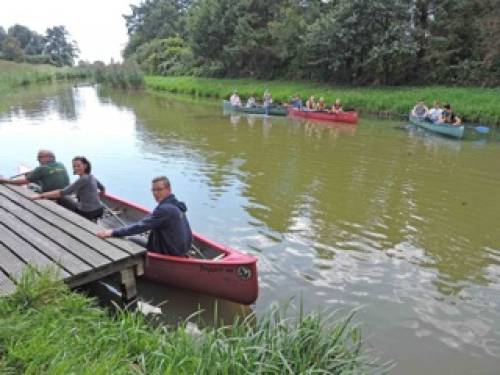 Am 30.08.16 befanden sich sechs SchülerInnen der GFS aus dem Seminarfach „Naturpark Dümmer“ auf einer spannenden Forschungsreise auf der Lohne. In vier 3er-Kanadiern paddelten sie als Teil der Crew „Die Kümmerer der Lohne“ auf der Lohne, um an ausgewählten Stellen Sauerstoffmessungen durchzuführen. Zu den „Kümmerern der Lohne“ zählen der Agenda 21 Förderverein Diepholz, der Sportfischereiverein Diepholz, die RUZ Lehrkraft Lukas Breul, der Kreisnaturschutzbeauftragte des Landkreises Diepholz sowie SchülerInnen des Seminarfaches „Naturpark Dümmer“ der Graf-Friedrich Schule und natürlich der Initiator der Reise, Herr Dieter Tornow (Vorsitzender der Agenda 21 Diepholz). Seit mehr als einer Woche liegt ein unangenehmer Geruch über Diepholz. Verursacher dieses Geruchs ist die abgestorbene Bioalgenmasse, die über den Dümmer in die Lohne eingespült wird. Diese Algenmasse kann über die Selbstreinigungsfähigkeit der Lohne nicht ausreichend abgebaut werden, da unter anderem die Fließgeschwindigkeit der Lohne hierfür zu gering ist. Der Wasserstand in der Lohne wird über die Wassermengenbewirtschaftung, die im Dümmerbewirtschaftungsplan planfestgestellt wurde, geregelt. Der nur zum Teil stattfindende Abbau der Algenbiomasse verbraucht viel Sauerstoff, der den Fischen der Lohne nun zum Überleben fehlt. Sie ziehen sich auf den Grund der Lohne zurück und sterben - unbemerkt von der Bevölkerung. Auf unserer Reise entdeckten wir lediglich einen verendeten Aal, im Wasser treibend. Als Sofortmaßnahme setzte die Stadt Diepholz den „Fischretter“ ein, um das weitere Absinken der Sauerstoffwerte in der Lohne aufzuhalten. Auch der portfischereiverein leitete auf Eigeninitiative hin Tag und Nacht Luft an ihrem Vereinsheim in die Lohne, um den Fischen ein Überleben zu ermöglichen. Ziel unserer Forschungsreise war es nun, einen Eindruck von den Sofortmaßnahmen zur Rettung der Fische zu erhalten und direkt auf dem Wasser Sauerstoffmessungen durchführen zu können. Insbesondere die Stellen, an denen die Stadt Diepholz den Fischretter aufgestellt hatte und der Sportfischereiverein Luft in die Lohne eingebracht hatte, waren von besonderem Interesse. So stoppte das Forschungsschiff mit seiner Crew um Herrn Dieter Tornow an ausgewählten Stellen, um Sauerstoffproben zu nehmen, während die anderen Boote dank der Kunst ihrer Steuermänner häufiger unfreiwillig in den Brombeersträuchern Rast machen mussten. Die ermittelten Sauerstoffwerte ließen den Rückschluss zu, dass die Algenmasse des Dümmers und auch der niedrige Wasserstand der Lohne mehr Einfluss auf die Sauerstoffkonzentration haben, als jegliche Sofortmaßnahmen jemals bewirken könnten. Fazit der „Kümmerer der Lohne“: Die Lohne muss in den 27- Punkteplan der Fortsetzung der Dümmersanierung aufgenommen werden, damit sich für die Lohne grundsätzlich etwas ändert. Text: Sylke Teuteberg, Foto: Dieter Tornow