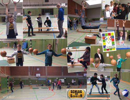Am Freitag den 17.03.17 fand unser jährlicher „Tag der offenen Schule“ statt. Auch die Fachschaft Sport öffnete die Türen ihrer Sporthalle mit dem frisch sanierten Kabinentrakt. In der „GFS Halle“ gab es in diesem Jahr das Angebot: „Schlag den Schüler“. Die Spielidee entstammt einer bekannten Fernsehshow. Ausgearbeitet und zur Verfügung gestellt wurde sie von unserem Sportkollegen Tobias Fricke. Vielen Dank hierfür!