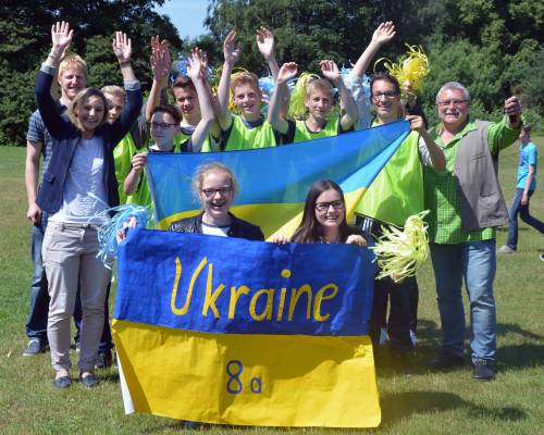Die Ukraine holt sich den Titel Bei vielen Schülern sind die großen Pausen die beliebteste Zeit des Tages. An der Graf-Friedrich-Schule (GFS) in Diepholz wurden diese in den vergangenen Wochen allerdings noch um einiges spannender. Die originale Europameisterschaft als Vorbild, fand dort ab dem 16. Mai die „Pausen-EM 2016“ statt, eine Reihe von Fußballspielen, die jeweils in den großen Pausen ausgetragen wurden. Die Jahrgänge fünf bis zehn des Gymnasiums konnten eigene Mannschaften stellen, welche im Anschluss ein Land zugelost bekamen. Die Begegnungen der Länder entsprachen dabei dem Spielplan der EM-Gruppenphase. Je nach Klassenstufe spielten entweder fünf (Klasse 5 und 6), vier (Klasse 7 und 8) oder drei (Klasse 9 und 10) Spieler in einer Mannschaft. Nachdem sich 2014 die „Pausen-WM“ bereits großer Beliebtheit erfreut hatte, gab es für das diesjährige Ereignis noch zahlreichere Anmeldungen, sodass in 51 Spielen insgesamt über 200 Teilnehmer gegeneinander antraten. „Dabei ist es wichtig, alle Klassenstufen gleichsam zu integrieren“, so Gunther Stahl, Sportlehrer an der GFS und einer der Organisatoren der Pausen-EM. Gestern fand schließlich das Finalspiel statt. In zwei spannenden Halbzeiten, verteilt auf die beiden großen Pausen des Tages, setzte sich die Mannschaft der 8a, welche die Ukraine vertrat, gegen die „französische“ Mannschaft aus der neunten Klassenstufe durch und gewann mit 4:0 deutlich das Endspiel. Ungefähr 500 Schüler verfolgten das Finale. Die siegreiche Mannschaft wird am letzten Schultag am 22. Juni, an dem auch die Siegerehrung stattfindet, außer-dem gegen die Fußballmannschaft der Lehrkräfte antreten. Organisiert wurde die Pausen-EM von den Lehrkräften Sylke Teuteberg, Tobias Fricke, Olaf Radler und Gunther Stahl. Außerdem spielte Kim Bohning, welche derzeit ihr freiwilliges ökologisches Jahr mit dem Schwerpunkt Sport an der GFS abschließt, eine entscheidende Rolle bei der Planung und Durchführung, so Stahl. Unterstützt wurde das Projekt von der Schülervertretung Sport im Rahmen des Angebotes der „Bewegten Schule“. Auch mit dem Wetter habe man stets Glück gehabt; von den möglichen Nachholterminen habe man keinen in Anspruch nehmen müssen. Aufgrund des großen Erfolges der letzten zwei Turniere wird es auch in zwei Jahren, wenn die Fußball-Weltmeisterschaft in Russland ausgetragen wird, sicher wieder eine Pausen-WM an der GFS geben. (Text und Foto: Jan Elia Fricke, Diepholzer Kreisblatt)