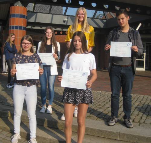 Merle Husmann erhielt das A1-Diplom und auf dem A2-Niveau waren Stamen Bankov, Lena Biedermann, Ebba Meyer und Alexandra Stele erfolgreich.