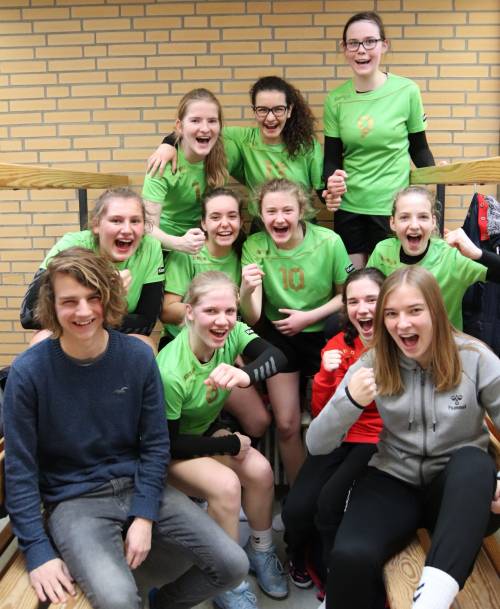 Am Mittwochmorgen machten wir - die Handballerinnen der Wettkampfklasse III - uns gut gelaunt auf den Weg zu unserer dritten und letzten Runde nach Nienburg. Sollten wir diese Runde gewinnen, würden wir als Vertreter Niedersachsens in Berlin antreten dürfen. Jedoch wird dies letzten Endes leider nicht unsere Aufgabe sein. Unser erster Gegner war das Gymnasium Hankensbüttel. Von Anfang an hatten wir den Vertreter des Braunschweiger Bezirks unter Kontrolle und konnten unser erstes Spiel mit einem Endstand von 12:7 für uns entscheiden. In unserem zweiten Spiel gegen das Aue-Geest-Gymnasium aus Harsefeld wartete eine große Herausforderung auf uns, denn die Harsefelder Mannschaft bestand aus den Mädels des Oberligisten VfL Fredenbeck, die einigen Spielerinnen unserer Mannschaft aus der Liga bekannt sind. Wir kamen jedoch gut ins Spiel und konnten uns auch mit 6:3 absetzen, jedoch verspielten wir in der zweiten Halbzeit unseren Vorsprung und unterlagen den starken Harsefeldern mit 10:14. In unserem letzten Spiel gegen die uns bekannte Lohner Mannschaft mussten wir auf unsere Mitte verzichten, da diese in unserem ersten Spiel nach einem Foul auf dem Hinterkopf gelandet war. Wir starteten mit einem 0:2 Rückstand in das Spiel gegen das Gymnasium aus Lohne, konnten dann aber zum 3:3 ausgleichen. Das Spiel verlief sehr ausgeglichen, keine Mannschaft konnte sich richtig absetzen, sodass nach dem Abpfiff ein Spielstand von 13:13 auf der Anzeigetafel stand. Auch wenn es für Berlin leider nicht ganz gereicht hat: Zweitbeste Schulmannschaft Niedersachsens zu sein, macht uns doch mächtig stolz. Nächstes Jahr werden wir wieder angreifen! Beim Landesentscheid waren dabei: Elis (1), Tabea, Patti (Tor), Cora (7), Lavinia (2), Alexa (5), Vanessa (12), Chiara R. (2), Meike (2) und unser tolles Trainerteam bestehend aus: Chiara B., Jakob, Frau Bartz und Frau Teuteberg. P.S.: Wir machen alles für dich, Vanessa! Text: Lavinia Bartz, Foto: Sylvia Bartz