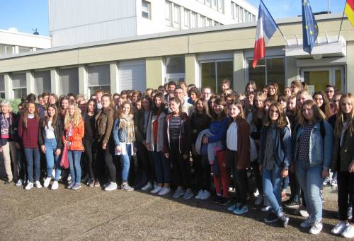 38 Schülerinnen und Schüler des Gymnasiums Graf-Friedrich-Schule und der Realschule Diepholz erlebten eine unvergessliche deutsch-französische Woche in der Diepholzer Partnerstadt Thouars. Zusammen mit ihren Französischlehrerinnen Bettina Hemann, Andrea Böhmer und Annette Wöstmann erreichten sie ihr Ziel nach 14 Stunden Busfahrt, die vom deutsch-französischen Jugendwerk bezuschusst wird. Das Wochenende diente dem Kennenlernen der Gastfamilien und der näheren Umgebung. Dann folgte ab Montag das Schulprogramm mit dem Empfang im Lycée Jean Moulin und der Besichtigung der Schule. In deutsch-französischen Gruppen lernten sie die Stadt Thouars mit ihrem historischen Stadtkern kennen. Der Empfang im Rathaus beendete den ersten Tag des Programms. Die Stadt Nantes, dem Tor zur Bretagne, war dann das nächste Ziel. Gemeinsam mit ihren französischen Austauschpartnern erkundete die Gruppe die Altstadt und erarbeitete anhand eines Fragebogens die Veränderungen auf dem Gebiet der ehemaligen Schiffswerften. Dort entstand u.a. das juristische Viertel mit dem Justizpalast. Auch der berühmte Elefant, der sich durch die Kraft der Maschinen bewegt, Thema der letzten Französischstunden vor der Fahrt, durfte nicht fehlen. In Saumur an der Loire besuchten die Schüler den in ganz Frankreich bekannten „Cadre noir“, die nationale Reitschule. Besonders beeindruckte dabei die bei den diesjährigen Olympischen Spielen in Rio erhaltene Goldmedaille der Reiter. Im Zentrum stand jedoch die deutsch-französische Projektarbeit in der Schule. Dort nahmen alle am Unterricht in Mathe, Bio, Französisch, Spanisch und Deutsch-teil und werteten zusammen ihre Arbeitsbögen aus. Bis dahin profitierten alle vom herrlichen Sommerwetter mit Temperaturen bis zu 32°C Ende September, so dass der verregnete Freitag mit dem Gang zum Wochenmarkt die gute Stimmung nicht trübte. Mit vielen neuen Eindrücken kehrten alle nach einer abwechslungsreichen Woche des Austauschs, bei dem viele neue Freundschaften entstanden, zurück und freuen sich auf ein Wiedersehen im Februar 2017. Text und Foto: Annette Wöstmann