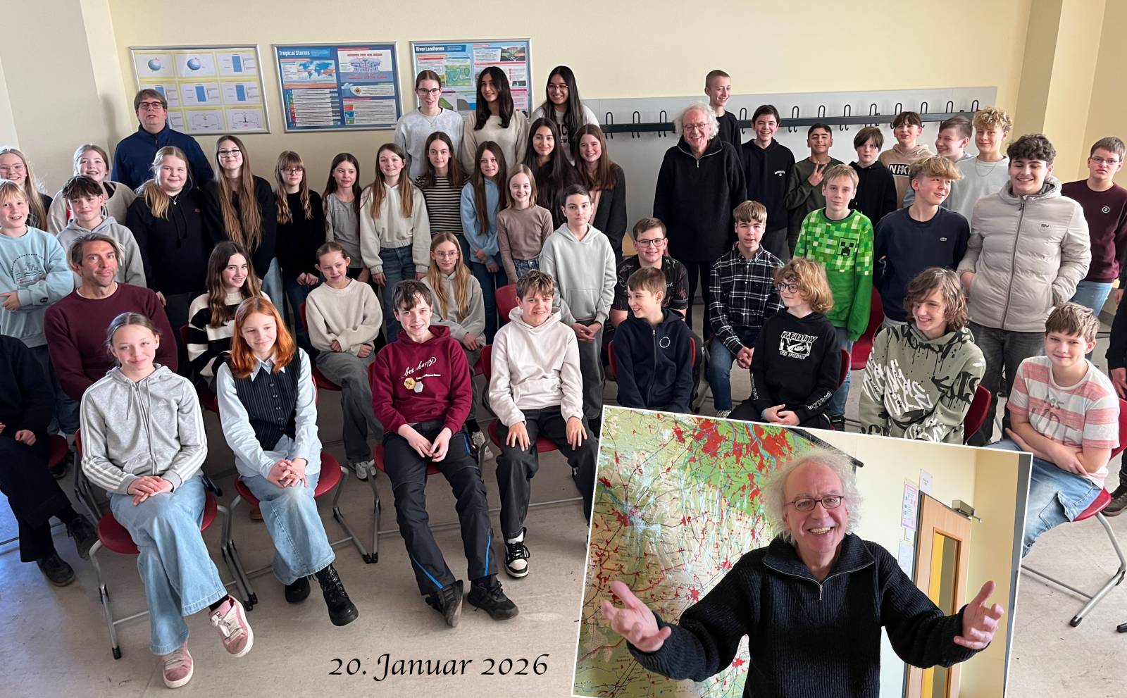 Bereits einen Tag zuvor erfolgte Eberhard Vogelwaids Balladenvortrag für die Siebtklässler – auch dieser ist bei uns mittlerweile Tradition geworden. Neben einigen deutschen „Klassikern“ wie Fontanes „John Maynard“ hatte er auch eine selbst verfasste Ballade vorbereitet, die nicht weniger gut bei der Zuhörerschaft ankam. Die Schüler hatten zahlreiche Gelegenheiten, sich an den Vorträgen zu beteiligen. So ergänzten sie beispielsweise Leerstellen in Schillers „Handschuh“, und Goethes „Zauberlehrling“ trug Herr Vogelwaid gemeinsam mit einem Freiwilligen im Wechsel vor, wobei sich die Schüler sehr textsicher zeigten. Beim Nonsens-Gedicht „Dunkel war’s, der Mond schien helle“ (unbekannter Verfasser) wurden die jungen Zuhörer abschließend dazu aufgefordert, die darin vorkommenden Fehler bzw. Widersprüche mitzuzählen, was sie ebenfalls mit großem Eifer machten.