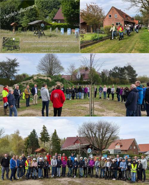 Die offizielle Übergabe von 30 Rollern, finanziert von der Stiftung Zukunft Wald und dem Lions Club Diepholz, war der Anlass für ein Treffen mehrerer Akteure, die einen Beitrag dazu geleistet haben, dass der GFS-Schulwald zu einem wertvollen und die Kraft des blühenden Lebens vermittelnden Kleinod der Natur geworden ist.