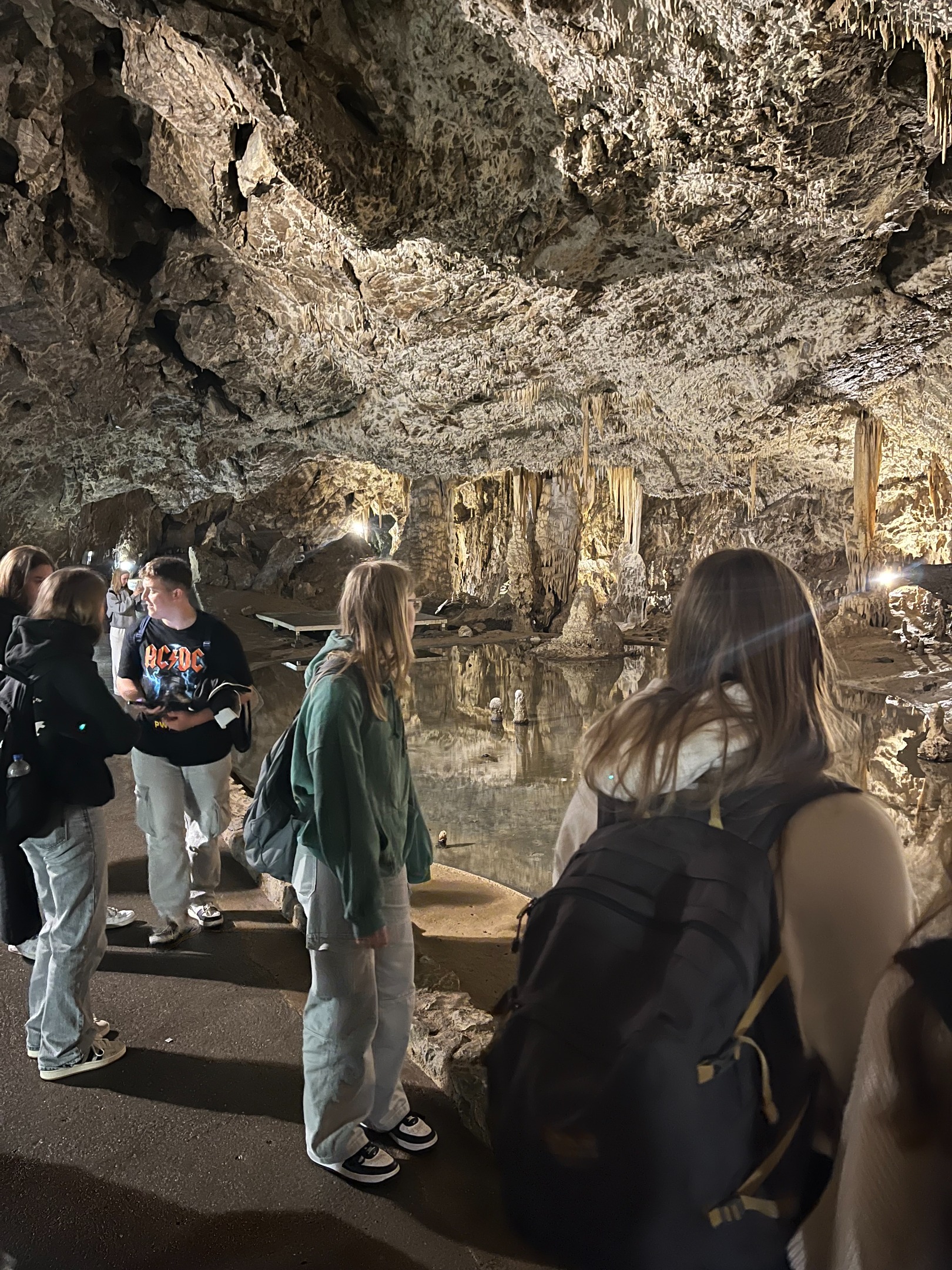 In der nächsten Woche erwarteten die Schülerinnen und Schüler viele unvergessliche Momente. Zu den besonderen Highlights zählten sicherlich die Sesselliftfahrt in die tiefhängenden Wolken in den Bergen der Walachei und der anschließende Besuch der Statue der slawischen Gottheit Radegast sowie der Besuch in den Punkva Höhlen. Dort konnte die Gruppe ihre Kenntnisse über Stalagmiten, Stalaktiten und Stalagnaten auffrischen und im Anschluss in einem Boot auf der unterirdischen Punkva aus dem Berg hinausfahren.