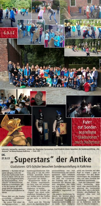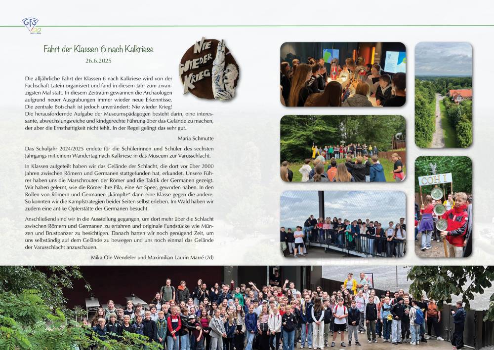 Dass der Jahrgang 6 in Begleitung der Klassenlehrer am letzten Wandertag des Schuljahres geschlossen nach Kalkriese fährt, hat mittlerweile Tradition. Organisiert wird die Fahrt von der Fachschaft Latein.