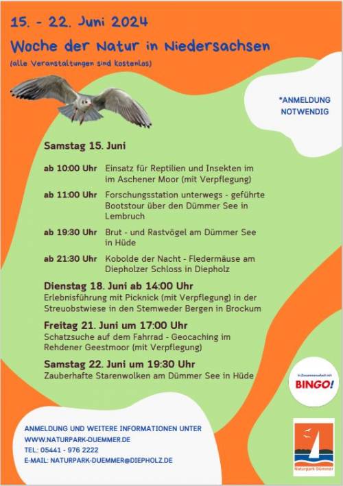 Auch der Naturpark Dümmer bietet interessante Aktivitäten an, auf die hier hingewiesen wird. Alle Veranstaltungen sind kostenlos.