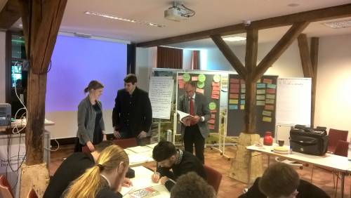 Seminar und Training im Assessment- Center: GFS-Schüler des 12. Jahrgangs beschäftigen sich vom 15.08.2016 bis 18.08.2016 intensiv mit ihrer beruflichen Zukunft. Wie geht es weiter nach dem Abitur? 24 Schülerinnen und Schüler der Graf- Friedrich Schule in Diepholz verbrachten zur Beantwortung dieser Frage im Rahmen ihrer Projektwoche zur Berufsorientierung 3 Seminartage auf dem Schäferhof in Marl. Das Berufsorientierungsseminar wurde dort im „alten Schafstall“ von der Agentur für Arbeit organisiert und unter Leitung von Herrn Rebischke und von seiner Kollegin Frau Goerlitz durchgeführt. Maßgeblich unterstützt wurden sie dabei am letzten Seminartag von Mitarbeitern des Psychologischen Dienstes der Agentur. Die Seminarräume wurden freundlicherweise wieder von der ZF Ludwigshafen bereitgestellt. Der erste Tag diente der allgemeinen Orientierung zur Berufsauswahl, wobei Fragen aufkamen, wie z.B.: Was sind meine Fähigkeiten? Was sind meine finanziellen Vorstellungen? Welche Voraussetzungen muss man mitbringen? Eingeleitet wurde all dies mit dem Song "Spinner" von "Revolverheld“. Der Songtext fordert dabei regelrecht auf, seinem Traumberuf nachzugehen, unabhängig von der Meinung anderer und davon, ob dieser Wunsch für andere eine „verrückte Spinnerei“ darstellt. Bei einem anschließenden sogenannten "Auktionsspiel", bei dem man mit begrenztem Spielkapital auf „Lebensoptionen“ gegen die Mitspieler und Konkurrenten bieten konnte, musste jeder Schüler seine persönliche Gewichtung für fiktive Zukunftsereignisse festlegen und danach seinen persönlichen Einsatz bestimmen. (z. B. für „einen Beruf mit einem Monatsverdienst von 7.000€ " oder „einen festen Beamtenstatus erlangen “oder „häufig im Ausland arbeiten“ oder „Familie gründen“.) So hatte jeder Mitspieler für sich Prioritäten zu setzen und sich intensiv mit seiner geplanten zukünftigen Lebenssituation auseinandersetzen. Am zweiten Tag stand das Konkretisieren der zukünftigen Berufsorientierung im Vordergrund. Zu Beginn konnte man mittels eines Tests einen Interessenbereich für sich finden, der dann ganz bestimmten Berufen zugeteilt wurde. Nachfolgend arbeiteten Schüler mit ähnlichen Interessen in Gruppen zusammen und informierten sich mit Hilfe von Materialien der Agentur und einer Internetrecherche über ihr Berufsfeld. Zentrale Schwerpunkte waren dabei Voraussetzungen, Bewerbungsabläufe und spätere Einsatzmöglichkeiten. Mit den umfassenden Präsentationen der Gruppenergebnisse war der erste Tag dann auch abgeschlossen. Am letzten Tag konnten die Schüler ihre eigenen Kompetenzen in einem favorisierten Bereich (Naturwissenschaften, Philologie, Wirtschaft, Mathematik und Informatik, Jura, Ingenieurwissenschaften) überprüfen. Dazu wurden sehr umfangreiche Studienfeld bezogene Tests unter Leitung von Frau Kirchner (Psychologin bei der Agentur für Arbeit in Vechta) und Herrn Brunke (Psychologe bei der Agentur für Arbeit in Nienburg) durchgeführt. Nach der Auswertung nahmen sich die Psychologen Zeit für die Schülerinnen und Schüler, um mit ihnen über ihre Ergebnisse zu sprechen, natürlich in Einzelgesprächen unter Beachtung der Anonymität. Im Rahmen eines simulierten Assessment- Centers wurde den Schülern schließlich über Rollenspiele vor Augen geführt, worauf Arbeitgeber oder auch Professoren bei Einstellungstests und Auswahlverfahren für Studiengänge so alles achten. Geprüft wurden u. a. bestimmte Kompetenzen, wie Teamfähigkeit, Selbstwirksamkeit und Durchsetzungsvermögen unter strenger Beobachtung des Seminarleiters Herrn Rebischke sowie einer ausgewählten Schüler-Beobachtungsgruppe. Großer Wert wurde dabei auch auf das richtige „Outfit“ gelegt, das am vorherigen Tag besprochen worden war. Im abschließenden Feedback stellte sich heraus, dass vor allem die Eignungstests und das Auktionsspiel viel positive Resonanz erhielten und das Seminar für viele zu einer konkreteren beruflichen Orientierung beitragen konnte. Von Rehsan Savga und Madlen Alms