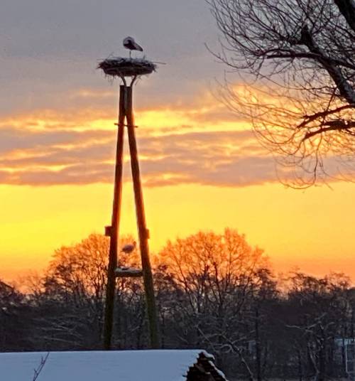 Wie im Vorjahr hat Meister Adebar bei seiner Rückkehr nach Diepholz Eis und Schnee vorgefunden. Weißstörchen machen die Minustemperaturen recht wenig aus, problematisch ist aber das mangelnde Nahrungsangebot.