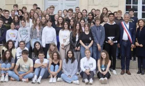 Am Montagmorgen begann das Programm in der Schule. Nach unserem ersten morgendlichen Treffen, bei dem uns das Programm für die Woche vorgestellt wurde, und einem französischen Frühstück mit Croissants und Apfelsaft, bei welchem uns auch die Schulleiterin des Lycées Jean Moulin begrüßte, zeigten uns unsere Austauschpartner ihre Schule. Auf diesem Rundgang durch das riesige Lycée konnten wir zum ersten Mal ein richtiges CDI und eine echte Infirmerie bestaunen, die wir sonst nur aus dem Französischbuch kannten. Nach dem Mittagessen in der Kantine machten wir uns auf, um die Stadt Thouars in Gruppen genauer zu entdecken. Am Rathaus von Thouars trafen alle Gruppen wieder zusammen, wo wir vom Bürgermeister mit einer Rede auf Französisch, die er „auch locker hätte auf Deutsch halten können“, Keksen und Apfelsaft empfangen wurden. Mit einem Gruppenfoto zusammen mit dem Bürgermeister ging dieser erste, ereignisreiche Schultag zu Ende.