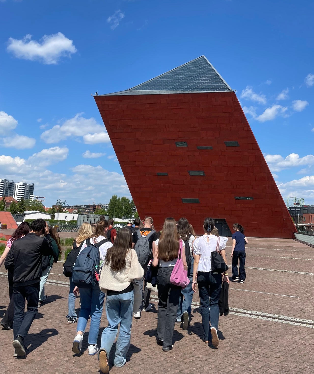 Passend zum 80. Jahrestag des Endes des Zweiten Weltkriegs lag ein Schwerpunkt des diesjährigen Programms auf der gemeinsamen Geschichte von Polen und Deutschland. Die bedrückende Stimmung während der Führung durch die Gedenkstätte Stutthof hinterließ bei der Austauschgruppe tiefe Eindrücke. „Ich kann nicht verstehen, wie Menschen so etwas mit Menschen machen können. Der Schüleraustausch ist wichtig, damit sich die Geschichte nicht wiederholt.“ – so eine Schülerin in der anschließenden Reflexionsrunde. Auch das Museum des Zweiten Weltkriegs in Danzig regte die Schülerinnen und Schüler zum Nachdenken an.